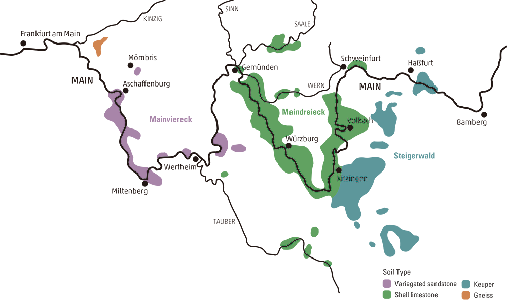A famous “peculiar” limestone soil of Franken found famously in the Stein (hagemann & harfe) Grosse Lage in Würzberg, and the Lump Grosse Lage of Escherndorf.