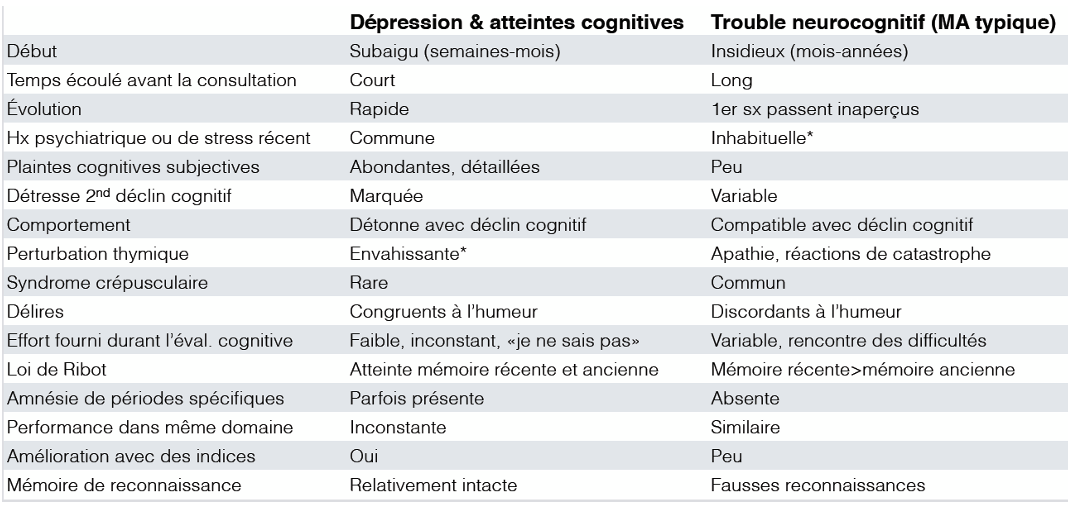 ● Trouble dépressif caractérisé, avec symptômes cognitifs secondaires (pseudo-démence)