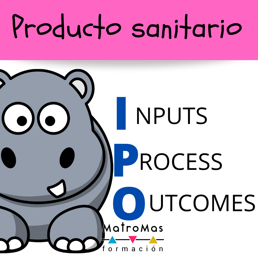 Inputs (necesidades, pacientes, personal), process (diagnósticos, cuidados), outcomes (servicios prestados, impacto).