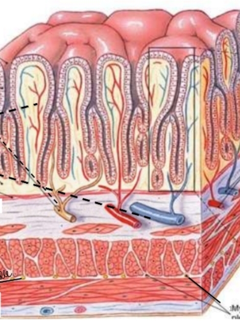 an invagination of the intestinal lumen that has cells of primarily secretion capabilities