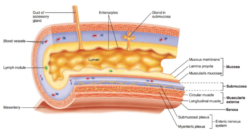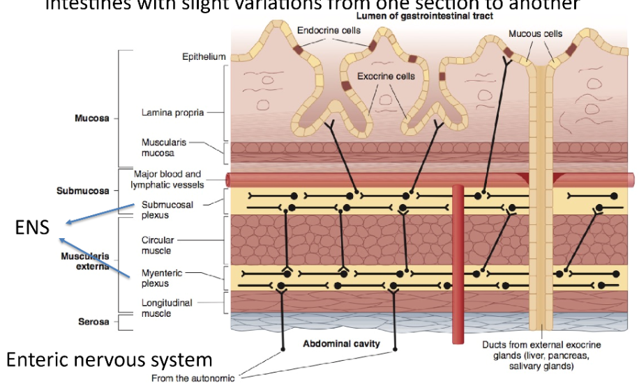 -basic structure of GI wall is similar in both the stomach and intestines with slight variations from one section to another