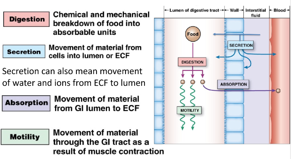 -move nutrients, water and electrolytes from the external environment into the body’s internal environment