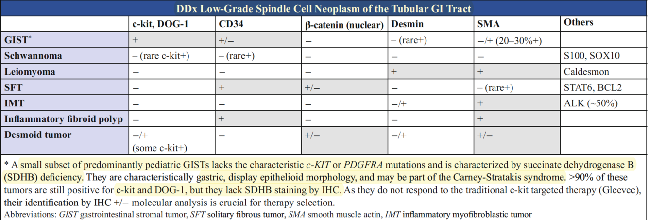 Ddx des lésions à cellules fusiformes de BG du tractus GI