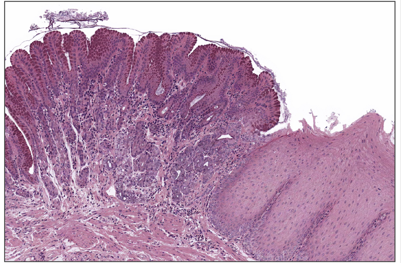 It is the oesophagastric junction - stratified squamous moist (esophagus) to simple columnar (cardiac stomach),