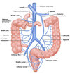 The superior mesenteric vein drains straight into the the hepatic portal vein and the inferior mesenteric vein drains into the splenic vein which then drains into the hepatic portal vein.