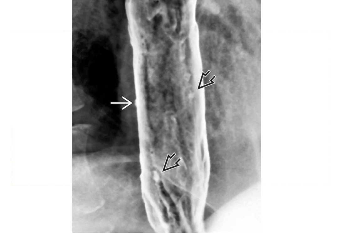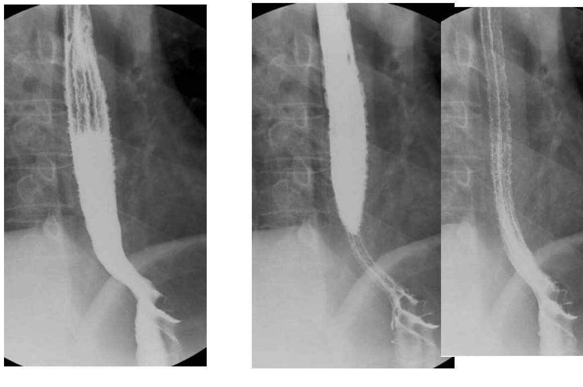 -Moderate dilatation of esophagus with fusiform stricture at lower end