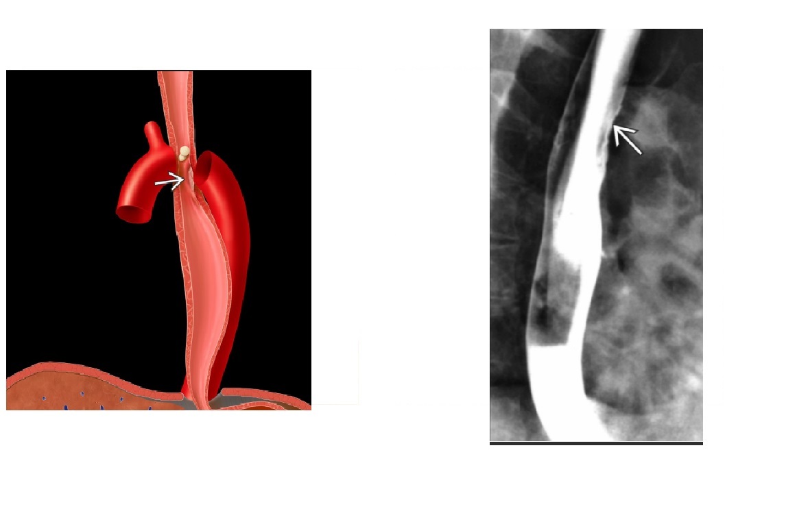 Posterior indentation of the oesophagus and anterior indentation of the trachea?
