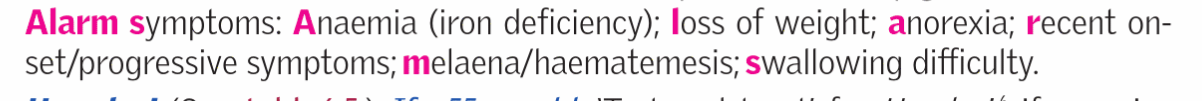 Red flag symptoms associated with dyspepsia?