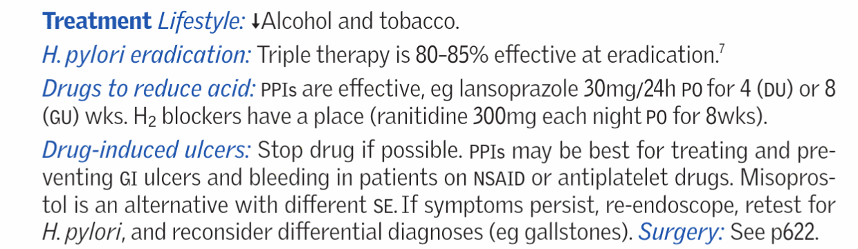- Peptic ulcer disease (gastric or duodenal ulcers).