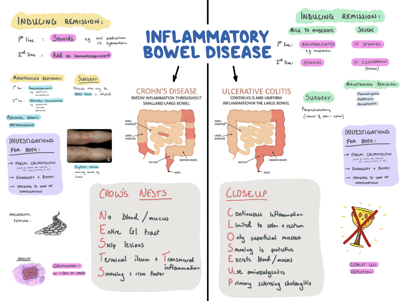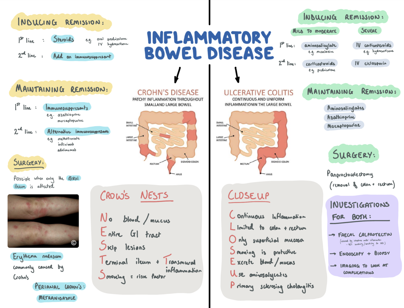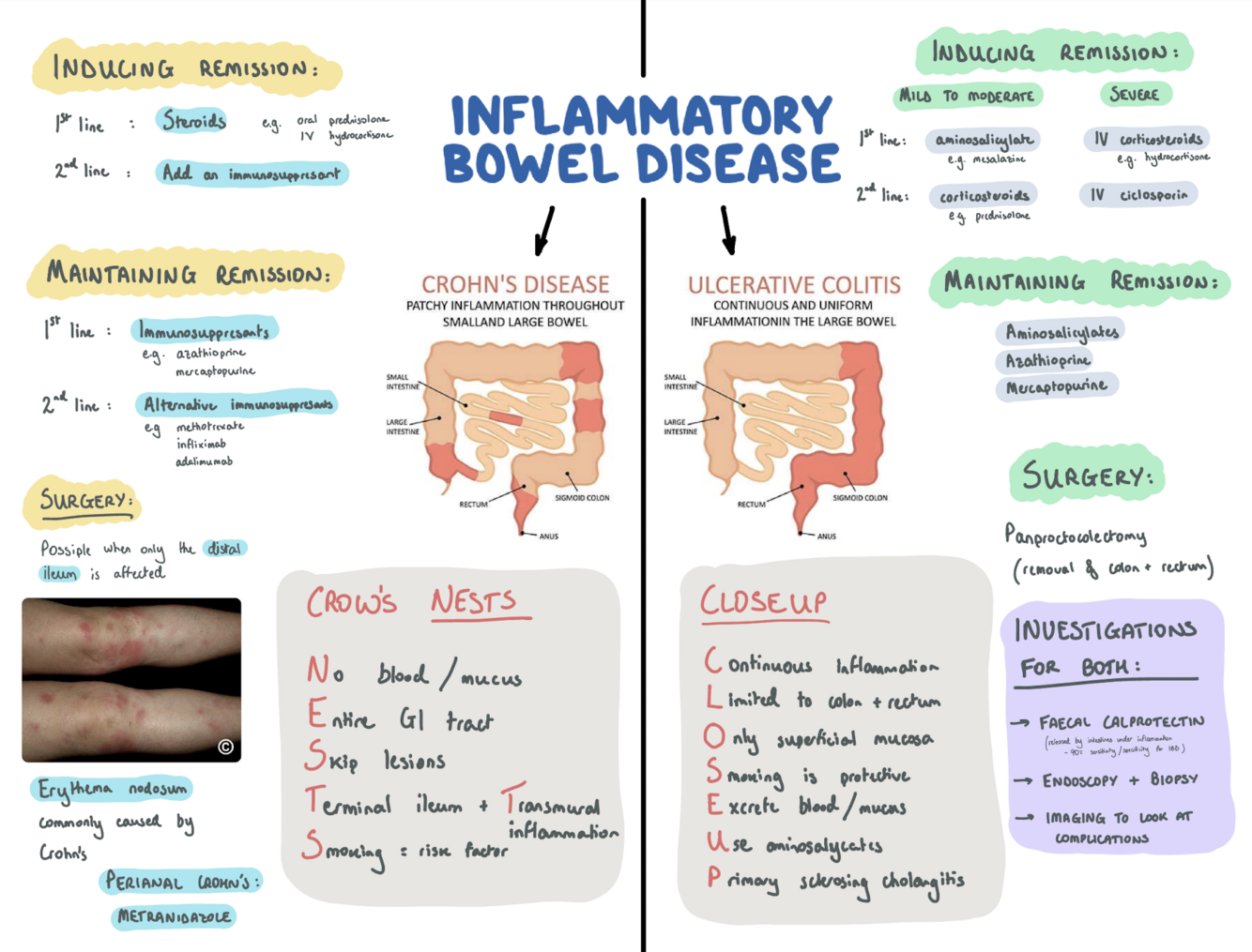 1st and 2nd line treatment for inducing remission in Crohn’s?