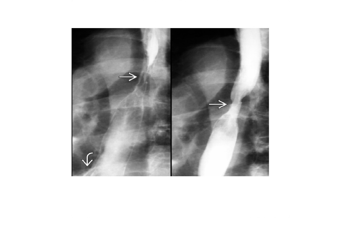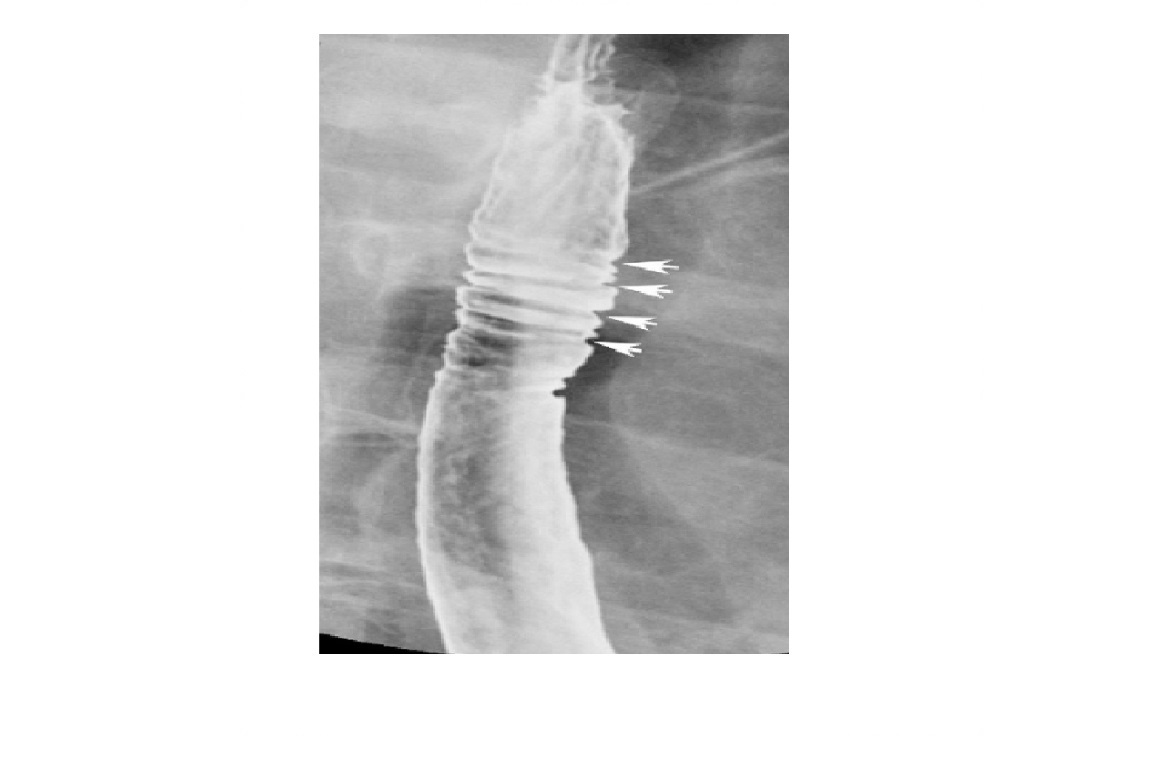-Moderate dilatation of esophagus with fusiform stricture at lower end