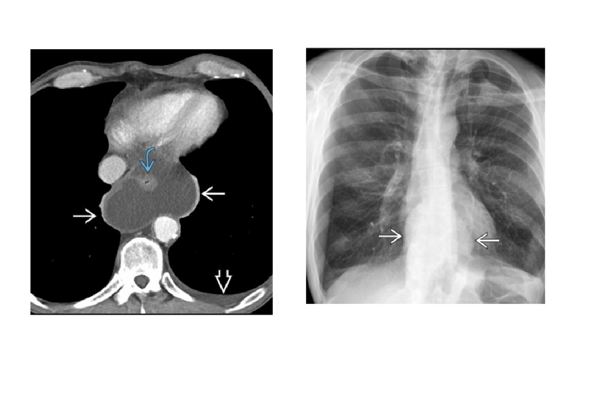 Anterior indentation of the oesophagus and posterior indentation of the trachea