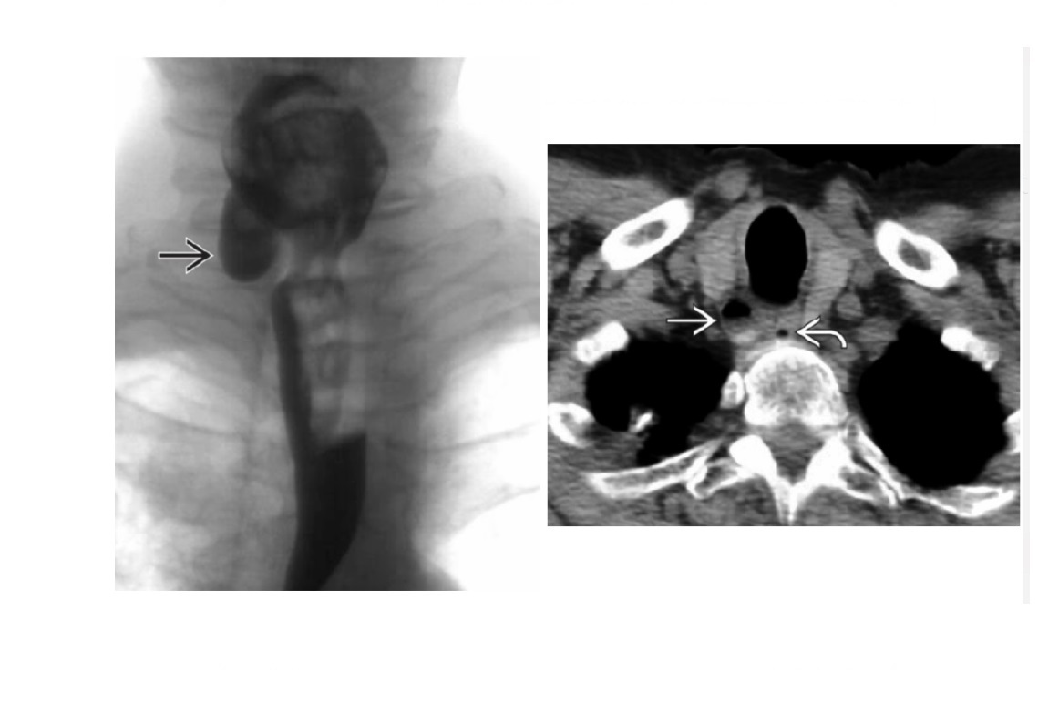 Outpouching with rounded contour posteriorly in the neck is above the cricopharyngeus muscle