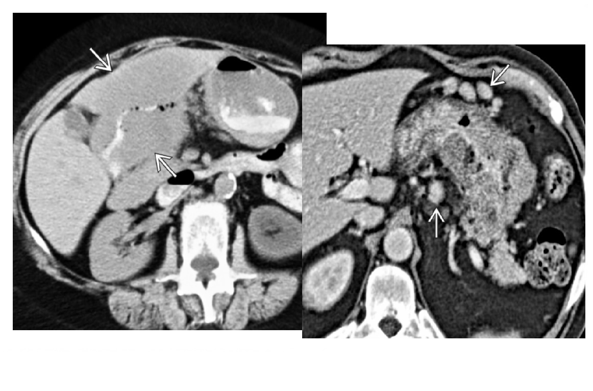 - FAT HALO sign - Mass envelop vessels, but preservation of fat around vessels