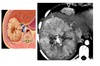 Bull’s-eye or target lesions, nodular intramural cavitated lesions