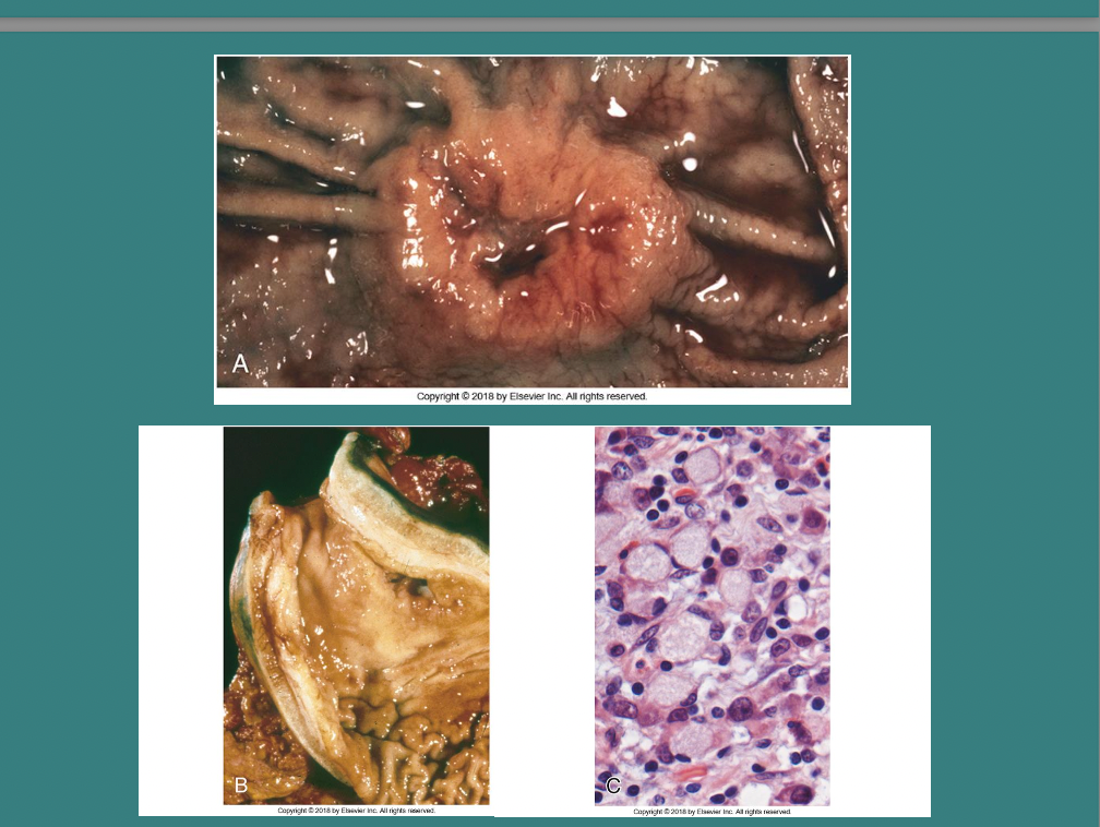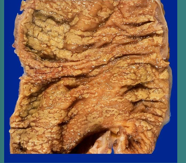 – Transmural, Granulomatous in 50%, fistulae – 5X increased risk of colon ca
