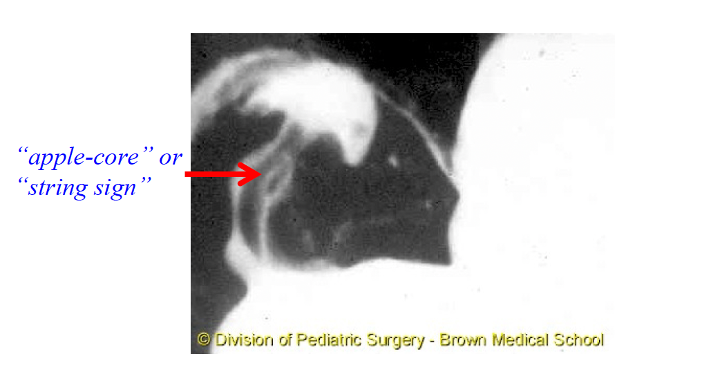 visualizes meconium against colonic wall, creating a double contrast impression.