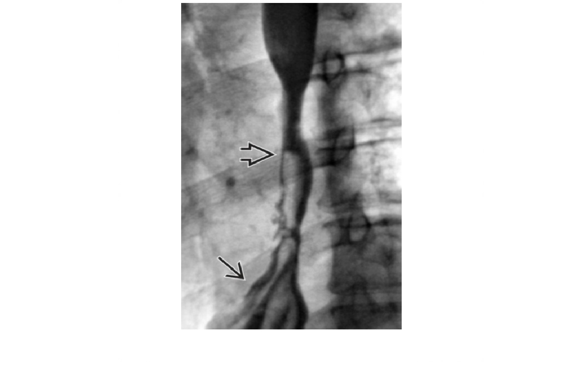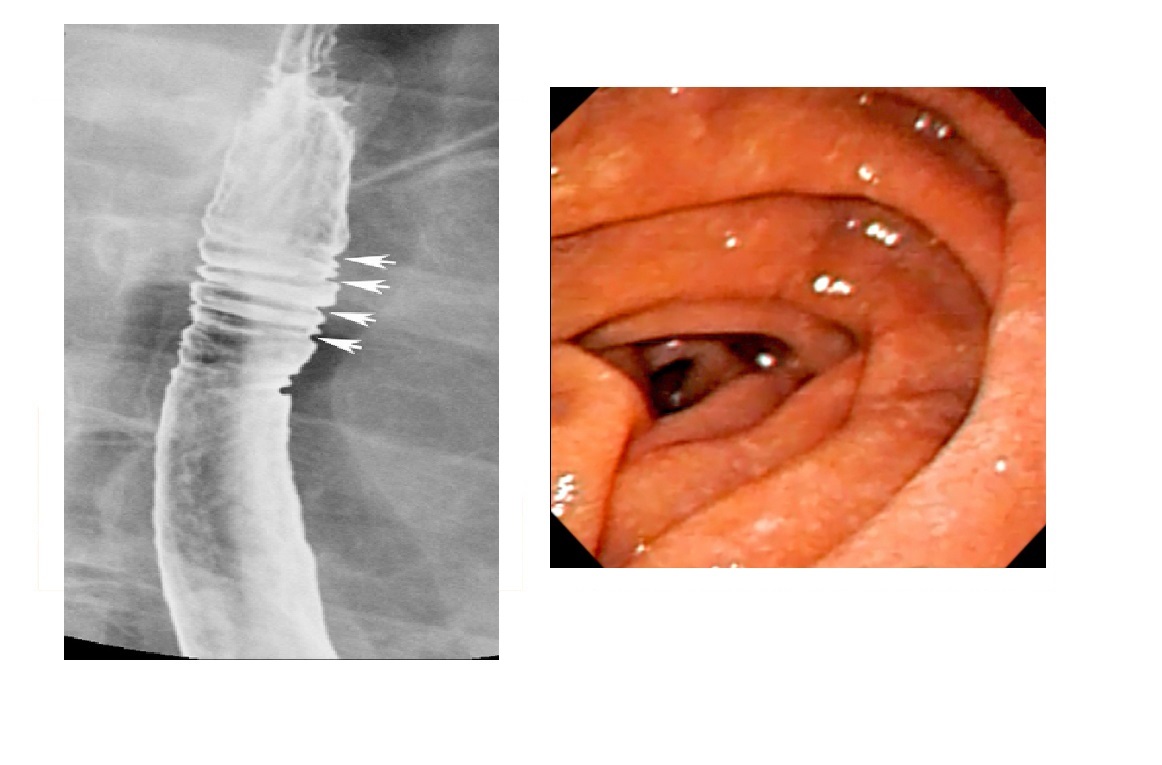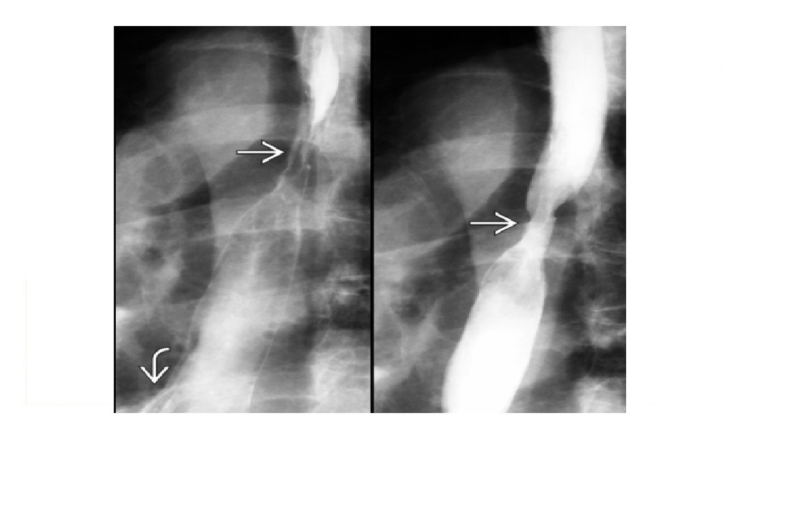 -Moderate dilatation of esophagus with fusiform stricture at lower end