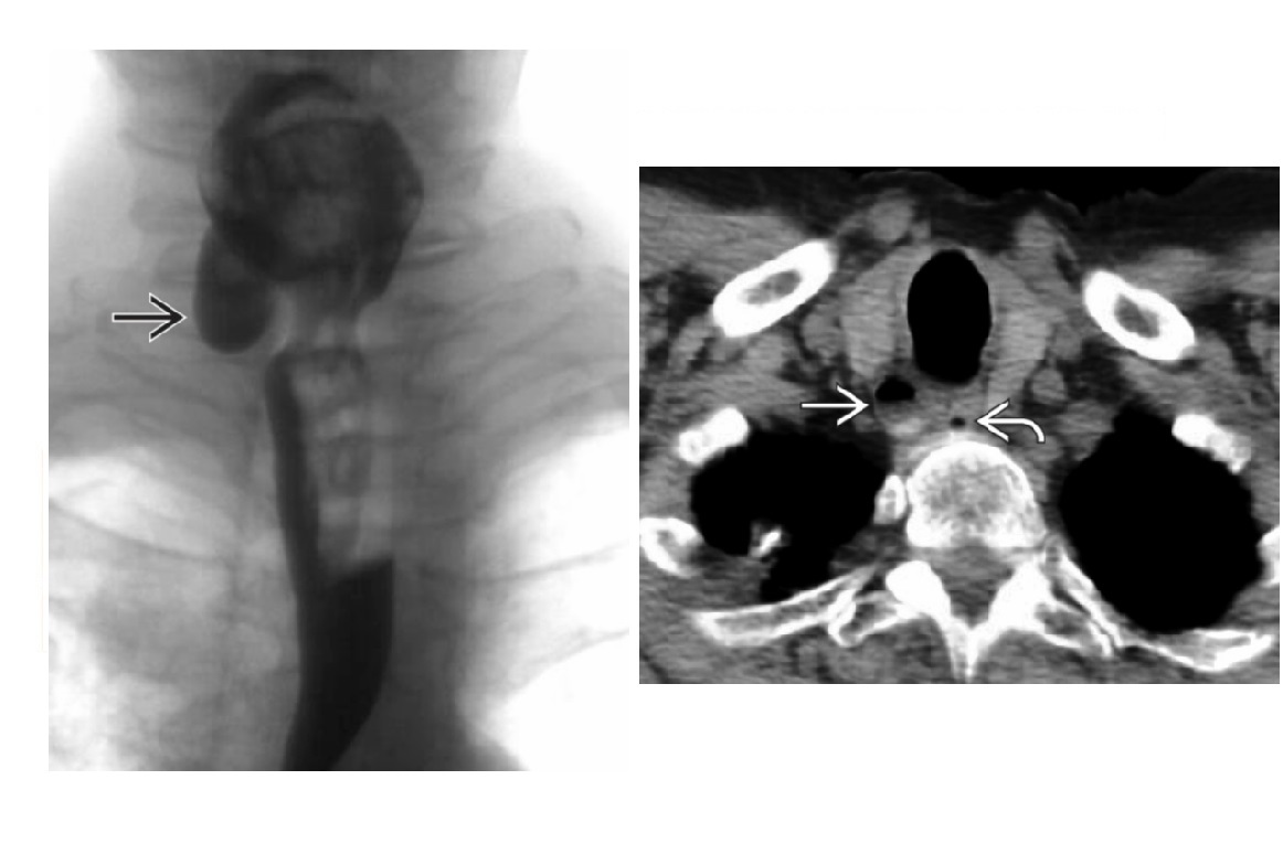 Outpouching with rounded contour posteriorly in the neck is above the cricopharyngeus muscle