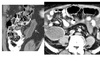 Bull’s-eye or target lesions, nodular intramural cavitated lesions