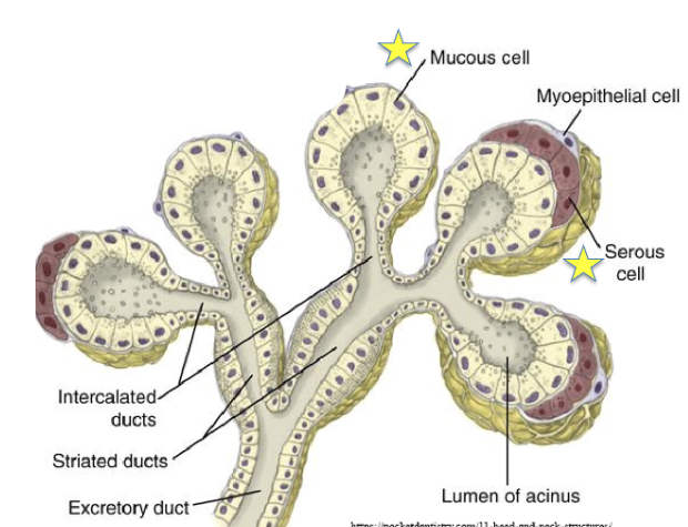 -submandibular: similar to parotid plus some mucus