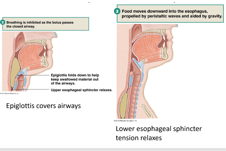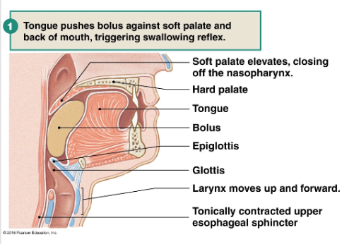 -soft palate closes off nasopharynx, peristaltic contractions in pharynx