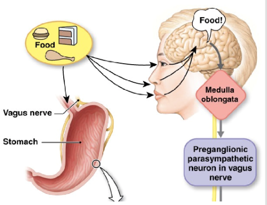-parasympathetic neurons-> ENS: stimulate gastrin production during cephalic phase (long reflex)