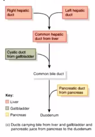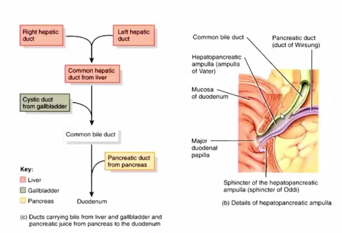 Describe the ducts going to the duodenum