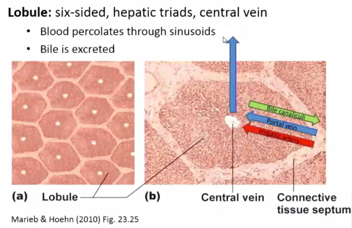 What is contained in a liver lobule?