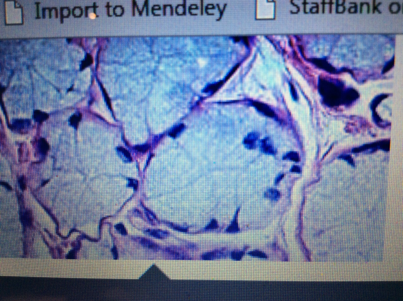 You can see mucous cell in the acini and the semiluar cap called the serous demilune. The serous demilune is an artifact of the preparation method for the sample. In reality the serous and mucous cells are aligned. Mixed acini like this are typified by the submandibular gland.