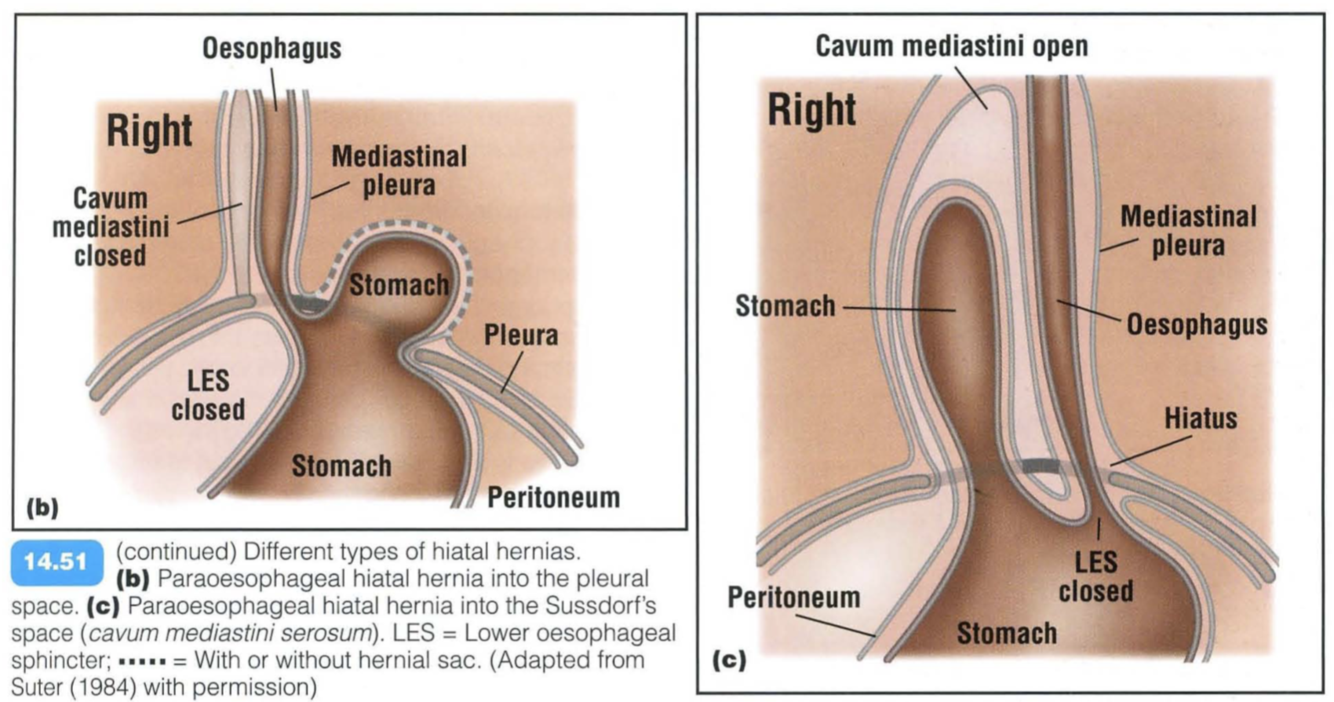 Sliding and paraoesophageal hiatal hernias can coexist. Chinese Shar Pei dogs are predisposed for hiatal hernias.