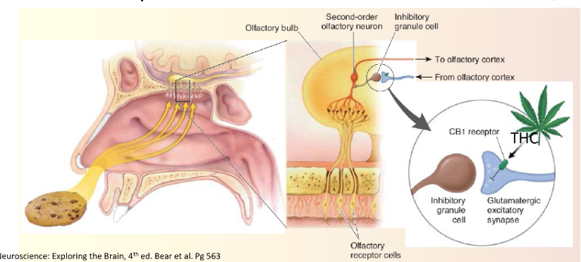 -research in mice points to an enhanced sense of smell (eat more)