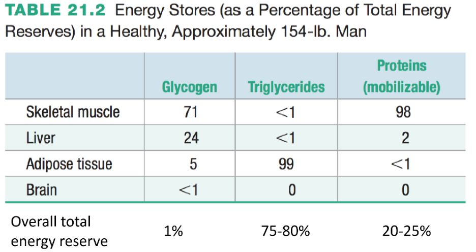 where are the energy stores in a healthy individual?