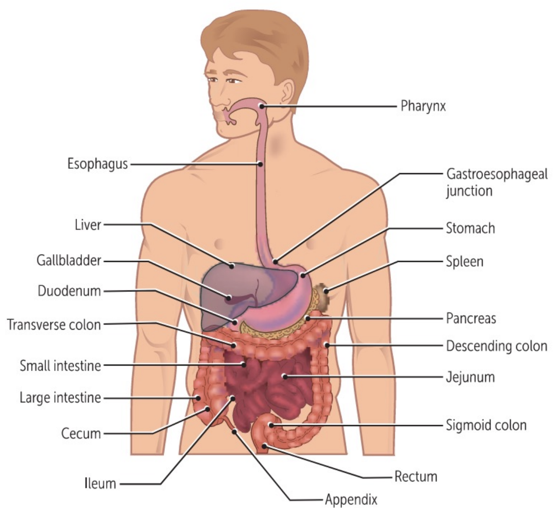 The GI organs reside in the abdominopelvic cavity which is lined with peritoneum