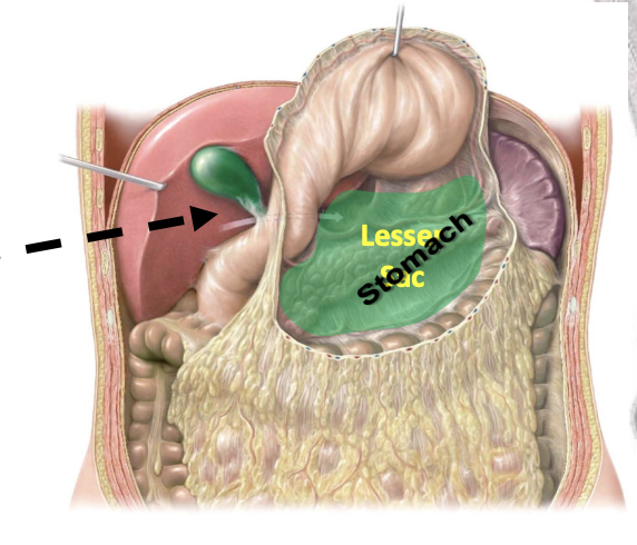 The entrance to the lesser sac is through a small opening referred to as the epiploic foramen (foramen of Winslow)