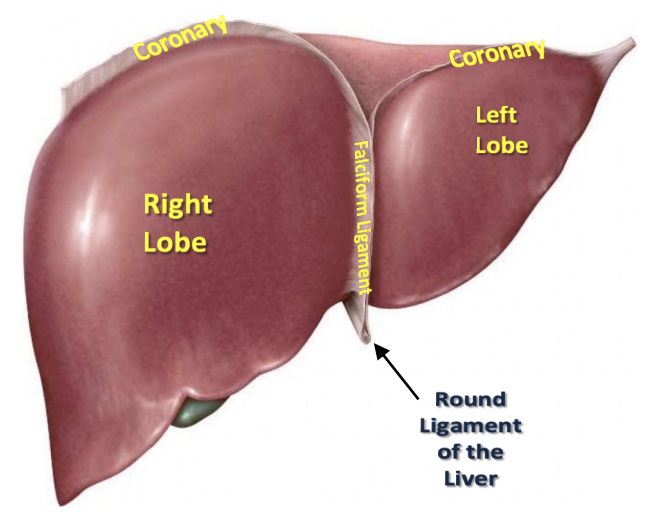 The _ ligaments extend from the liver to the diaphragm