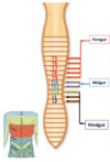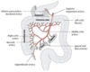 The mesentery of the small intestines has a fan shape and connects the _ and _ to the posterior abdominal wall