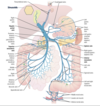 The mesentery of the small intestines has a fan shape and connects the jejunum and ileum to the posterior abdominal wall