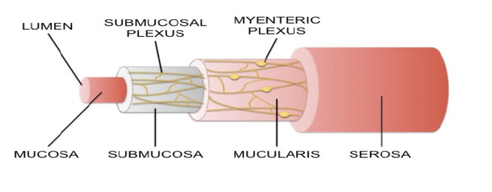 The myenteric plexus and submucosal plexus.