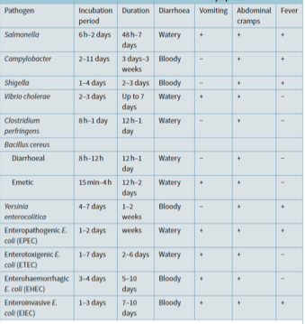 Timing:0.5 to 5 days incubation, can kill within hours without rehydration; WHO