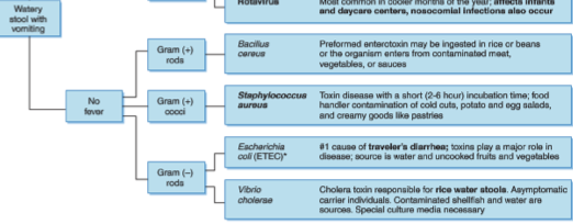 patient has watery stools w/ vomiting w/ no fever what are the bugs?