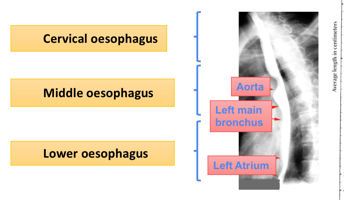 N.B. Left main bronchus is between middle and over oesophagus