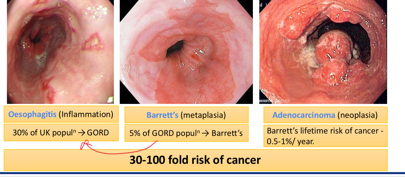 N.B theres’ an increased 30-100 fold risk of cancer if you have GORD