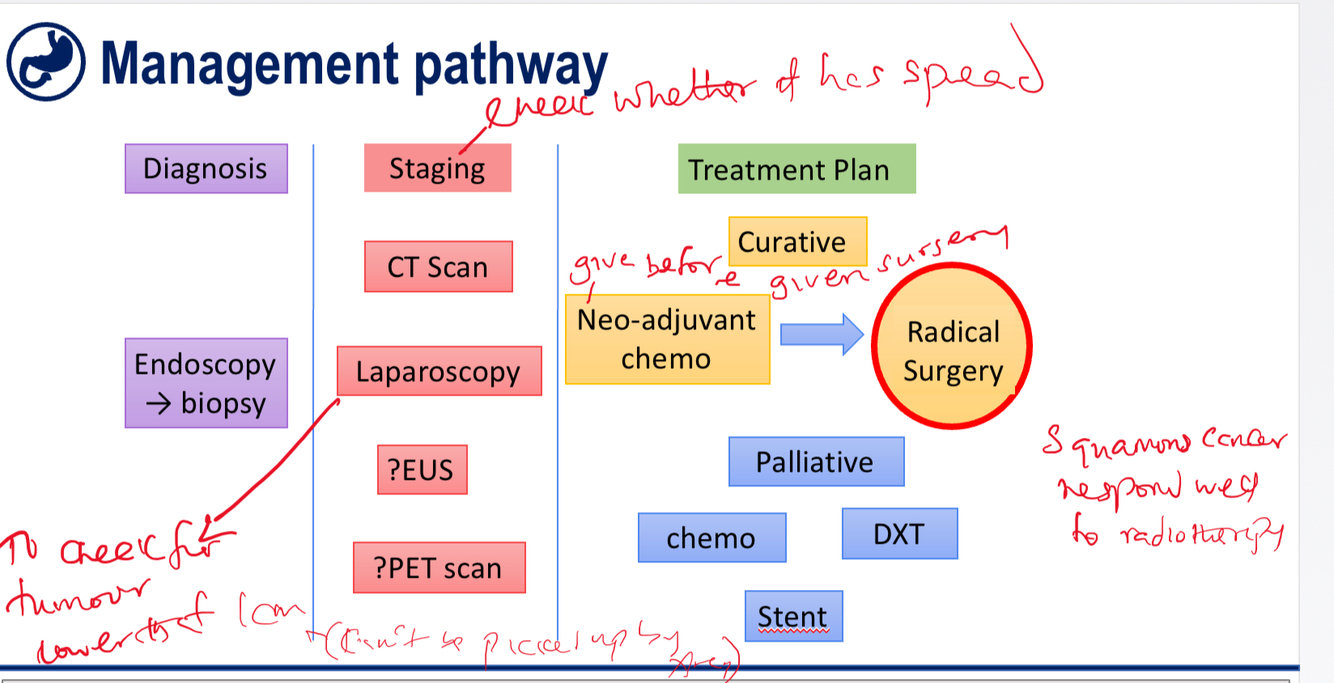 Draw out the management pathway for oesophageal cancer.