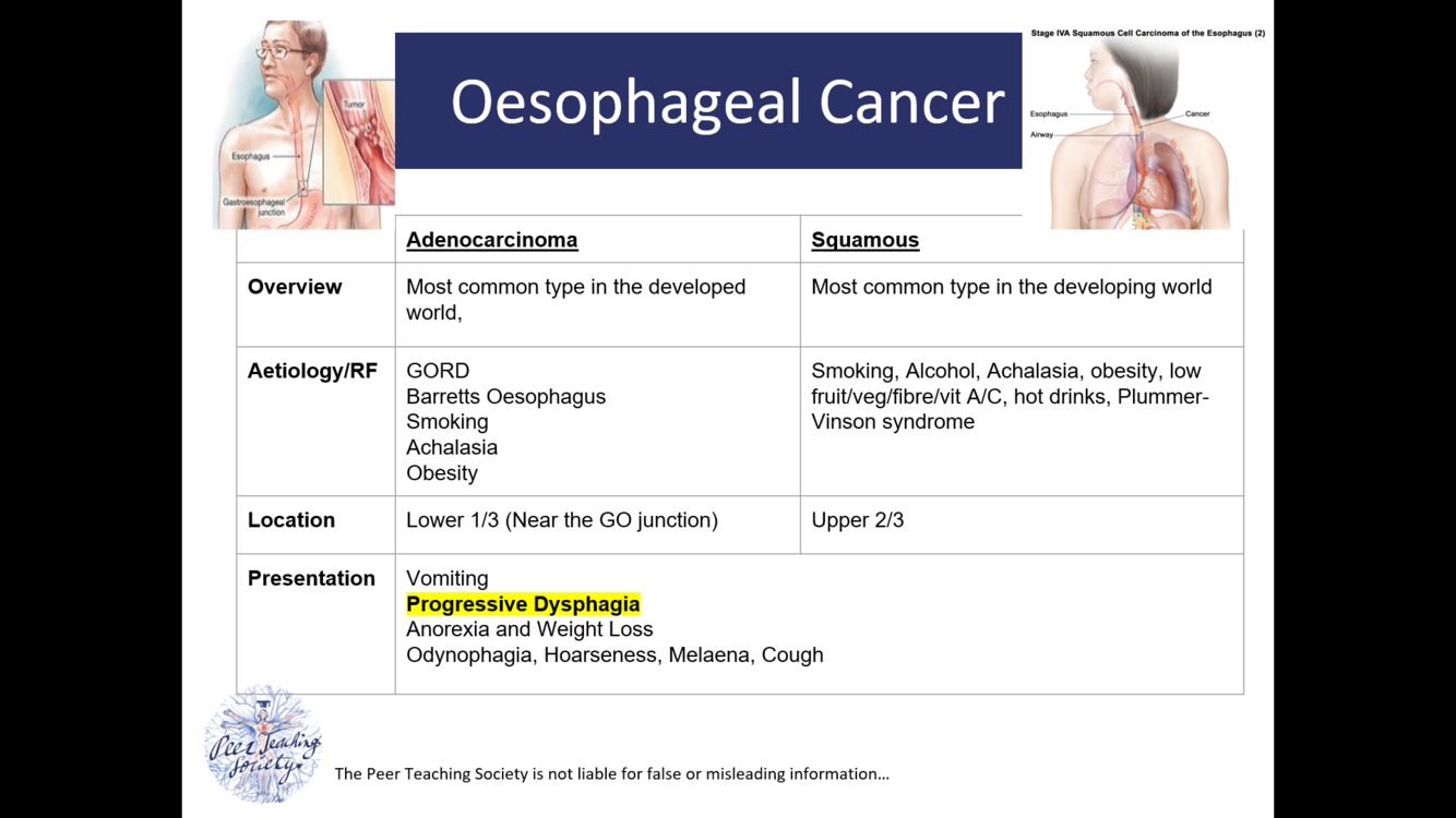 • Oesophageal cancer = rare malignancy of oesophageal epithelium