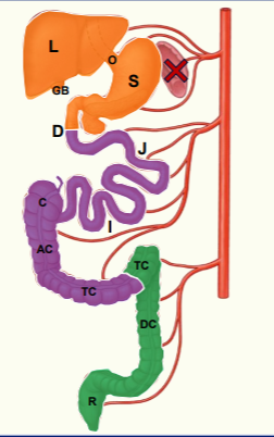 • 2 nd part duodenum to ¾ transverse colo