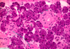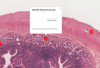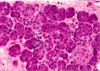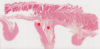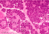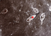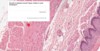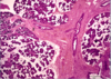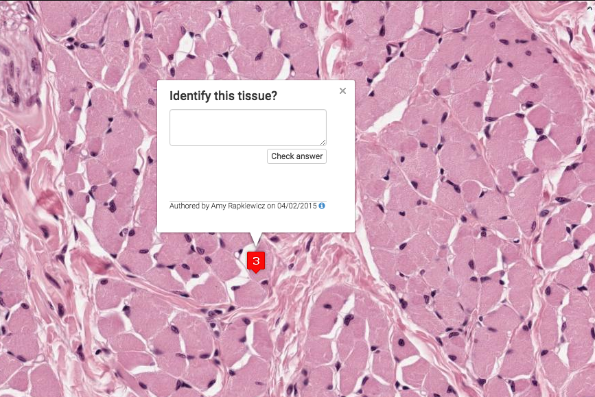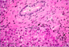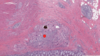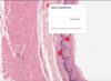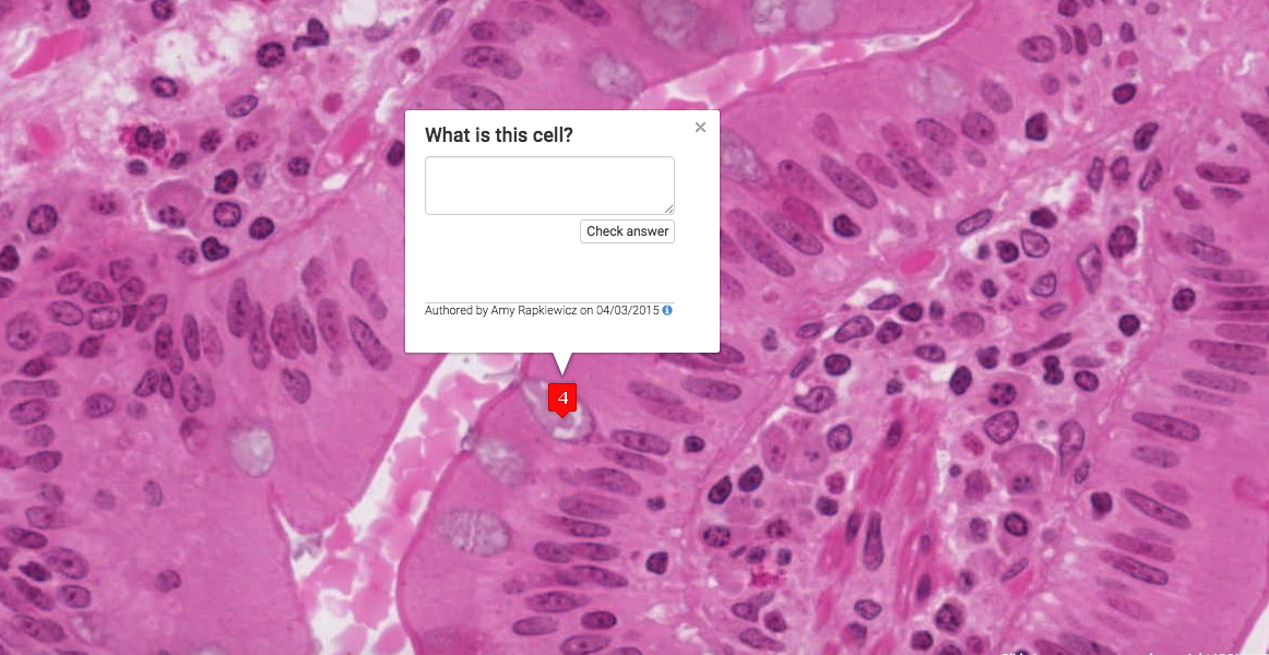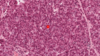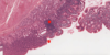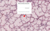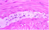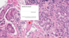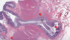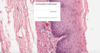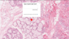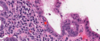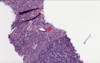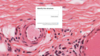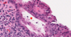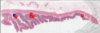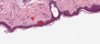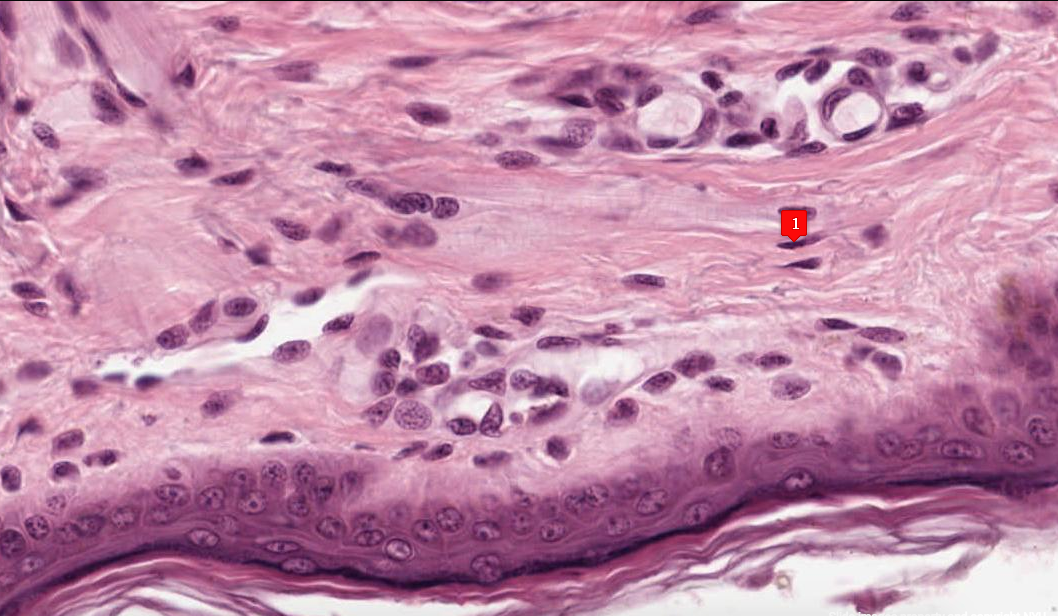 The marker is on a fibroblast. As you can see, the cell is beneath the epithelium and surrounded by a pink loose substance. What is this substance? Does the fibroblast produce it?