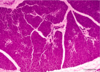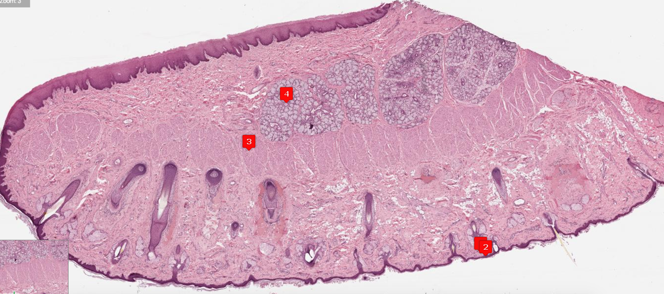 The tissue is skeletal muscle. The structure is the orbicularis oris facial muscle.
