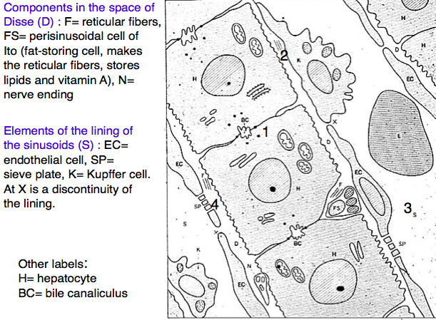 what we call sinusoidal capillaries that are found at either side of hepatocytes (2).