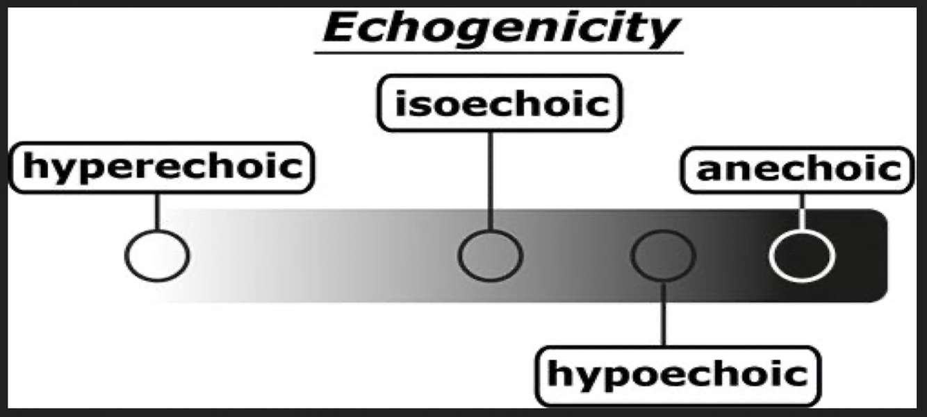 What are hypo and hyperechoic? Anechoic?